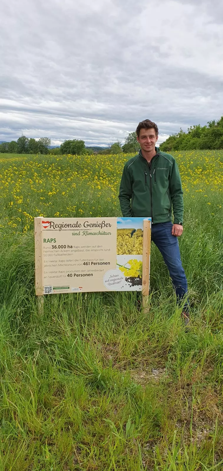 Zur Direktvermarktung zählt bei uns unter anderem das kalt gepresste Rapsöl. Unter dem Programm „Öpul“ wird bei uns zuhause der Raps angebaut, geerntet und danach in der Ölmühle gepresst. Anschließend wird das goldgelbe Öl zu den Wirtshäusern und Küchen in der Region geliefert, um dort zum Einsatz zu kommen.